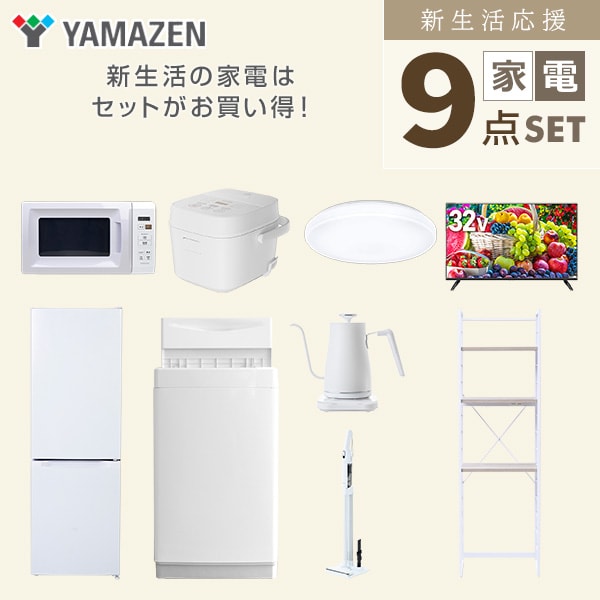 | 山善 YAMAZEN 【新生活応援セット】 家電セット 一人暮らし 新生活家電 9点セット 新品 ( 6kg洗濯機 157L冷蔵庫 電子レンジ 炊飯器 シーリングライト 32型液晶テレビ 温調ケトル 軽量クリーナー 家電収納ラック ) |