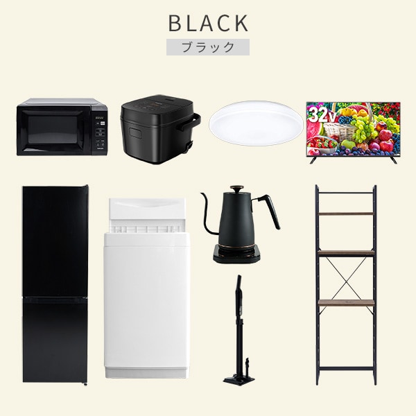 | 商品説明 | 【洗濯機】 ●容量:6.0kg(洗濯時)、1.5kg(風乾燥時) ●8つのコース搭載(標準・毛布・おいそぎ・ドライ・ソフト・つけおき・部屋干し・槽洗浄) 【冷蔵庫】 ●容量:157L(冷蔵室109L/冷凍室48L) ●年間消費電力量:270kWh/年 【電子レンジ】 ●容量17L、ターンテーブル ●高周波出力:50Hz(500W、200W相当)、60Hz(650W、500W、200W相当) 【炊飯器】 ●炊飯容量:3.0合炊き ●8種の炊き分けメニュー:省エネ、白米、早炊き、玄米、無洗米、炊込み、おかゆ、温度調理 【シーリングライト】 ●全光束:3600lm ●30分、60分OFFタイマー付き 【32型液晶テレビ】 ●サイズ:32V型 ●2K対応ハイビジョン液晶テレビ 【電気温調ケトル】 ●容量:800ml ●温度設定範囲:60-100度の間で1度単位で温度調整可能 【軽量クリーナー】 ●わずか820gの軽量クリーナー ●連続使用時間:(強)約10分、(標準)約25分 【家電収納ラック】 ●棚やコンセントの高さを、モノに合わせて変更可能 ●2口コンセント付き(計1500Wまで)でよく使う家電や雑貨をすっきりひとまとめ ●ラック以外メーカー保証:1年間 |