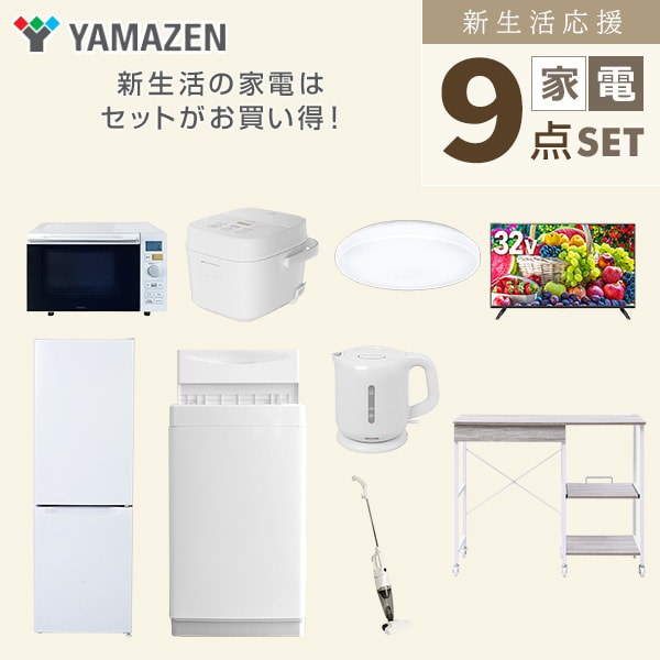 | 山善 YAMAZEN 【新生活応援セット】 家電セット 一人暮らし 新生活家電 9点セット 新品 ( 6kg洗濯機 157L冷蔵庫 オーブンレンジ 炊飯器 シーリングライト 32型液晶テレビ 電気ケトル スティッククリーナー レンジラック ) |