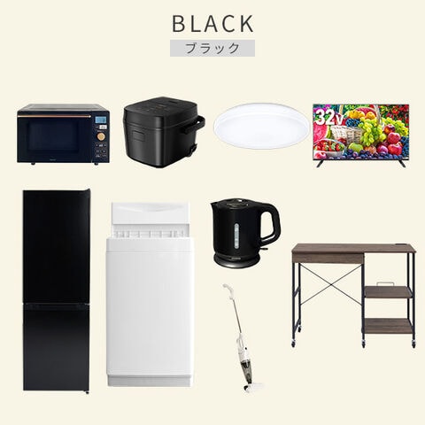 | 商品説明 | 【洗濯機】 ●容量:6.0kg(洗濯時)、1.5kg(風乾燥時) ●8つのコース搭載(標準・毛布・おいそぎ・ドライ・ソフト・つけおき・部屋干し・槽洗浄) 【冷蔵庫】 ●容量:157L(冷蔵室109L/冷凍室48L) ●年間消費電力量:270kWh/年 【オーブンレンジ】 ●容量18L、フラットテーブル ●高周波出力:650W(60Hzのみ)/500W/200W相当 【炊飯器】 ●炊飯容量:3.0合炊き ●8種の炊き分けメニュー:省エネ、白米、早炊き、玄米、無洗米、炊込み、おかゆ、温度調理 【シーリングライト】 ●全光束:3600lm ●30分、60分OFFタイマー付き 【32型液晶テレビ】 ●サイズ:32V型 ●2K対応ハイビジョン液晶テレビ 【電気ケトル】 ●容量:1.0L ●空焚き防止機能搭載 【クリーナー】 ●スティック&ハンディの2WAY ●吸込仕事率:40W 【レンジラック】 ●ゴミ箱上を活用する、しっかり頑丈なキッチンラック ●2口コンセント付き(計1500Wまで)でよく使う家電や雑貨をすっきりひとまとめ ●ラック以外メーカー保証:1年間 |