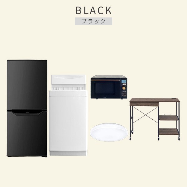 | 商品説明 | 【洗濯機】 ●容量:6.0kg(洗濯時)、1.5kg(風乾燥時) ●8つのコース搭載(標準・毛布・おいそぎ・ドライ・ソフト・つけおき・部屋干し・槽洗浄) 【冷蔵庫】 ●容量:106L(冷蔵室73L/冷凍室33L) ●年間消費電力量:268kWh/年(50Hz/60Hz) 【オーブンレンジ】 ●容量18L、フラットテーブル ●高周波出力:650W(60Hzのみ)/500W/200W相当 【シーリングライト】 ●全光束:3600lm ●30分、60分OFFタイマー付き 【レンジラック】 ●ゴミ箱上を活用する、しっかり頑丈なキッチンラック ●2口コンセント付き(計1500Wまで)でよく使う家電や雑貨をすっきりひとまとめ ●ラック以外メーカー保証:1年間 |