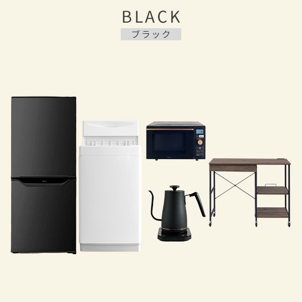 | 商品説明 | 【洗濯機】 ●容量:6.0kg(洗濯時)、1.5kg(風乾燥時) ●8つのコース搭載(標準・毛布・おいそぎ・ドライ・ソフト・つけおき・部屋干し・槽洗浄) 【冷蔵庫】 ●容量:106L(冷蔵室73L/冷凍室33L) ●年間消費電力量:268kWh/年(50Hz/60Hz) 【オーブンレンジ】 ●容量18L、フラットテーブル ●高周波出力:650W(60Hzのみ)/500W/200W相当 【電気温調ケトル】 ●容量:800ml ●温度設定範囲:60-100度の間で1度単位で温度調整可能 【レンジラック】 ●ゴミ箱上を活用する、しっかり頑丈なキッチンラック ●2口コンセント付き(計1500Wまで)でよく使う家電や雑貨をすっきりひとまとめ ●ラック以外メーカー保証:1年間 |