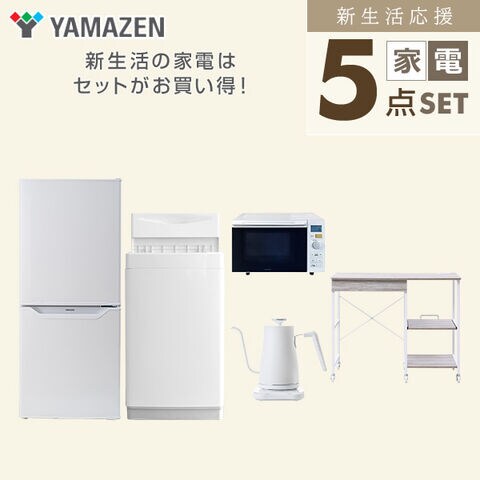 | 山善 YAMAZEN 【新生活応援セット】 家電セット 一人暮らし 新生活家電 5点セット 新品 ( 6kg洗濯機 106L冷蔵庫 オーブンレンジ 温調ケトル レンジラック ) |