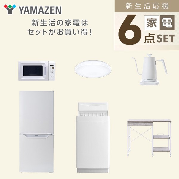| 山善 YAMAZEN 【新生活応援セット】 家電セット 一人暮らし 新生活家電 6点セット 新品 ( 6kg洗濯機 106L冷蔵庫 電子レンジ シーリングライト 温調ケトル レンジラック ) |