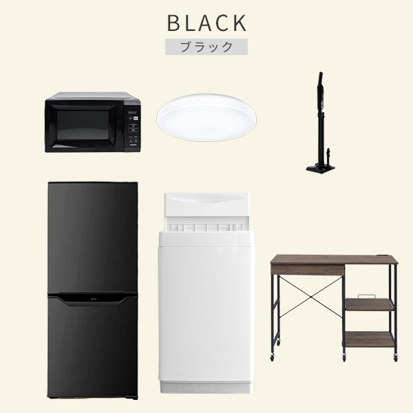 | 商品説明 | 【洗濯機】 ●容量:6.0kg(洗濯時)、1.5kg(風乾燥時) ●8つのコース搭載(標準・毛布・おいそぎ・ドライ・ソフト・つけおき・部屋干し・槽洗浄) 【冷蔵庫】 ●容量:106L(冷蔵室73L/冷凍室33L) ●年間消費電力量:268kWh/年(50Hz/60Hz) 【電子レンジ】 ●容量17L、ターンテーブル ●高周波出力:50Hz(500W、200W相当)、60Hz(650W、500W、200W相当) 【シーリングライト】 ●全光束:3600lm ●30分、60分OFFタイマー付き 【軽量クリーナー】 ●わずか820gの軽量クリーナー ●連続使用時間:(強)約10分、(標準)約25分 【レンジラック】 ●ゴミ箱上を活用する、しっかり頑丈なキッチンラック ●2口コンセント付き(計1500Wまで)でよく使う家電や雑貨をすっきりひとまとめ ●ラック以外メーカー保証:1年間 |
