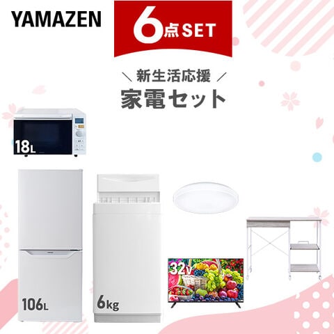 新生活家電セット 6点セット 一人暮らし (6kg洗濯機 106L冷蔵庫 オーブンレンジ シーリングライト 32型液晶テレビ レンジラック) ひとり暮らし 単身赴任新 学生 入学 おすすめ 山善 YAMAZEN【送料無料】
