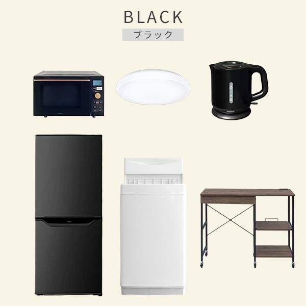 | 商品説明 | 【洗濯機】 ●容量:6.0kg(洗濯時)、1.5kg(風乾燥時) ●8つのコース搭載(標準・毛布・おいそぎ・ドライ・ソフト・つけおき・部屋干し・槽洗浄) 【冷蔵庫】 ●容量:106L(冷蔵室73L/冷凍室33L) ●年間消費電力量:268kWh/年(50Hz/60Hz) 【オーブンレンジ】 ●容量18L、フラットテーブル ●高周波出力:650W(60Hzのみ)/500W/200W相当 【シーリングライト】 ●全光束:3600lm ●30分、60分OFFタイマー付き 【電気ケトル】 ●容量:1.0L ●空焚き防止機能搭載 【レンジラック】 ●ゴミ箱上を活用する、しっかり頑丈なキッチンラック ●2口コンセント付き(計1500Wまで)でよく使う家電や雑貨をすっきりひとまとめ ●ラック以外メーカー保証:1年間 |