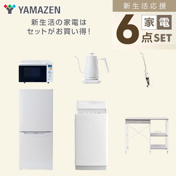 新生活家電セット 6点セット 一人暮らし (6kg洗濯機 106L冷蔵庫 オーブンレンジ 温調ケトル スティッククリーナー レンジラック) ひとり暮らし 単身赴任新 学生 入学 おすすめ 山善 YAMAZEN【送料無料】