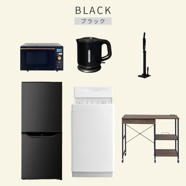 | 商品説明 | 【洗濯機】 ●容量:6.0kg(洗濯時)、1.5kg(風乾燥時) ●8つのコース搭載(標準・毛布・おいそぎ・ドライ・ソフト・つけおき・部屋干し・槽洗浄) 【冷蔵庫】 ●容量:106L(冷蔵室73L/冷凍室33L) ●年間消費電力量:268kWh/年(50Hz/60Hz) 【オーブンレンジ】 ●容量18L、フラットテーブル ●高周波出力:650W(60Hzのみ)/500W/200W相当 【電気ケトル】 ●容量:1.0L ●空焚き防止機能搭載 【軽量クリーナー】 ●わずか820gの軽量クリーナー ●連続使用時間:(強)約10分、(標準)約25分 【レンジラック】 ●ゴミ箱上を活用する、しっかり頑丈なキッチンラック ●2口コンセント付き(計1500Wまで)でよく使う家電や雑貨をすっきりひとまとめ ●ラック以外メーカー保証:1年間 |