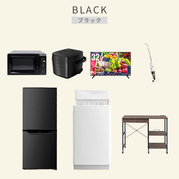 | 商品説明 | 【洗濯機】 ●容量:6.0kg(洗濯時)、1.5kg(風乾燥時) ●8つのコース搭載(標準・毛布・おいそぎ・ドライ・ソフト・つけおき・部屋干し・槽洗浄) 【冷蔵庫】 ●容量:106L(冷蔵室73L/冷凍室33L) ●年間消費電力量:268kWh/年(50Hz/60Hz) 【電子レンジ】 ●容量17L、ターンテーブル ●高周波出力:50Hz(500W、200W相当)、60Hz(650W、500W、200W相当) 【炊飯器】 ●炊飯容量:3.0合炊き ●8種の炊き分けメニュー:省エネ、白米、早炊き、玄米、無洗米、炊込み、おかゆ、温度調理 【32型液晶テレビ】 ●サイズ:32V型 ●2K対応ハイビジョン液晶テレビ 【クリーナー】 ●スティック&ハンディの2WAY ●吸込仕事率:40W 【レンジラック】 ●ゴミ箱上を活用する、しっかり頑丈なキッチンラック ●2口コンセント付き(計1500Wまで)でよく使う家電や雑貨をすっきりひとまとめ ●ラック以外メーカー保証:1年間 |