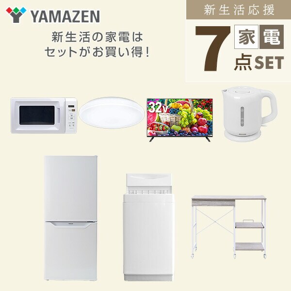 | 山善 YAMAZEN 【新生活応援セット】 家電セット 一人暮らし 新生活家電 7点セット 新品 ( 6kg洗濯機 106L冷蔵庫 電子レンジ シーリングライト 32型液晶テレビ 電気ケトル レンジラック ) |