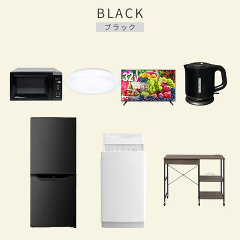 | 商品説明 | 【洗濯機】 ●容量:6.0kg(洗濯時)、1.5kg(風乾燥時) ●8つのコース搭載(標準・毛布・おいそぎ・ドライ・ソフト・つけおき・部屋干し・槽洗浄) 【冷蔵庫】 ●容量:106L(冷蔵室73L/冷凍室33L) ●年間消費電力量:268kWh/年(50Hz/60Hz) 【電子レンジ】 ●容量17L、ターンテーブル ●高周波出力:50Hz(500W、200W相当)、60Hz(650W、500W、200W相当) 【シーリングライト】 ●全光束:3600lm ●30分、60分OFFタイマー付き 【32型液晶テレビ】 ●サイズ:32V型 ●2K対応ハイビジョン液晶テレビ 【電気ケトル】 ●容量:1.0L ●空焚き防止機能搭載 【レンジラック】 ●ゴミ箱上を活用する、しっかり頑丈なキッチンラック ●2口コンセント付き(計1500Wまで)でよく使う家電や雑貨をすっきりひとまとめ ●ラック以外メーカー保証:1年間 |