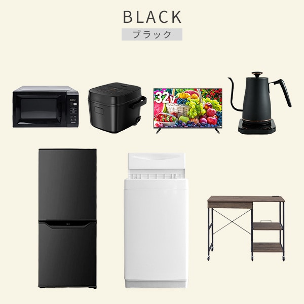 | 商品説明 | 【洗濯機】 ●容量:6.0kg(洗濯時)、1.5kg(風乾燥時) ●8つのコース搭載(標準・毛布・おいそぎ・ドライ・ソフト・つけおき・部屋干し・槽洗浄) 【冷蔵庫】 ●容量:106L(冷蔵室73L/冷凍室33L) ●年間消費電力量:268kWh/年(50Hz/60Hz) 【電子レンジ】 ●容量17L、ターンテーブル ●高周波出力:50Hz(500W、200W相当)、60Hz(650W、500W、200W相当) 【炊飯器】 ●炊飯容量:3.0合炊き ●8種の炊き分けメニュー:省エネ、白米、早炊き、玄米、無洗米、炊込み、おかゆ、温度調理 【32型液晶テレビ】 ●サイズ:32V型 ●2K対応ハイビジョン液晶テレビ 【電気温調ケトル】 ●容量:800ml ●温度設定範囲:60-100度の間で1度単位で温度調整可能 【レンジラック】 ●ゴミ箱上を活用する、しっかり頑丈なキッチンラック ●2口コンセント付き(計1500Wまで)でよく使う家電や雑貨をすっきりひとまとめ ●ラック以外メーカー保証:1年間 |