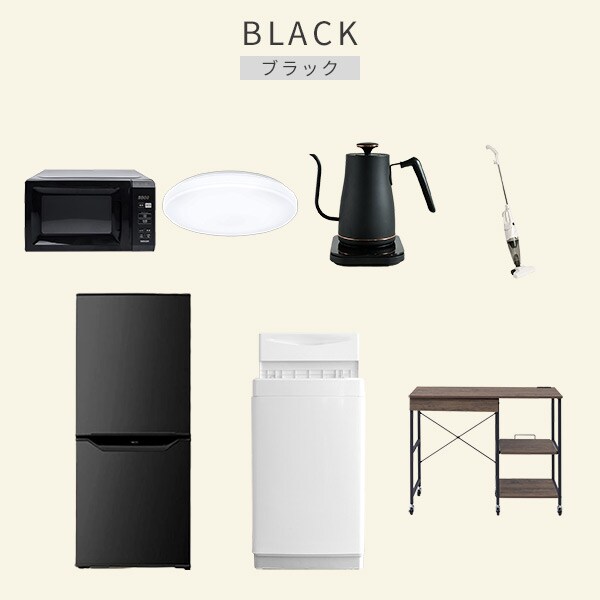 | 商品説明 | 【洗濯機】 ●容量:6.0kg(洗濯時)、1.5kg(風乾燥時) ●8つのコース搭載(標準・毛布・おいそぎ・ドライ・ソフト・つけおき・部屋干し・槽洗浄) 【冷蔵庫】 ●容量:106L(冷蔵室73L/冷凍室33L) ●年間消費電力量:268kWh/年(50Hz/60Hz) 【電子レンジ】 ●容量17L、ターンテーブル ●高周波出力:50Hz(500W、200W相当)、60Hz(650W、500W、200W相当) 【シーリングライト】 ●全光束:3600lm ●30分、60分OFFタイマー付き 【電気温調ケトル】 ●容量:800ml ●温度設定範囲:60-100度の間で1度単位で温度調整可能 【クリーナー】 ●スティック&ハンディの2WAY ●吸込仕事率:40W 【レンジラック】 ●ゴミ箱上を活用する、しっかり頑丈なキッチンラック ●2口コンセント付き(計1500Wまで)でよく使う家電や雑貨をすっきりひとまとめ ●ラック以外メーカー保証:1年間 |