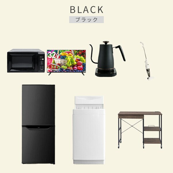 【新生活応援セット】 家電セット 一人暮らし 新生活家電 7点セット 新品 ( 6kg洗濯機 106L冷蔵庫 電子レンジ 32型液晶テレビ 温調ケトル スティッククリーナー レンジラック )