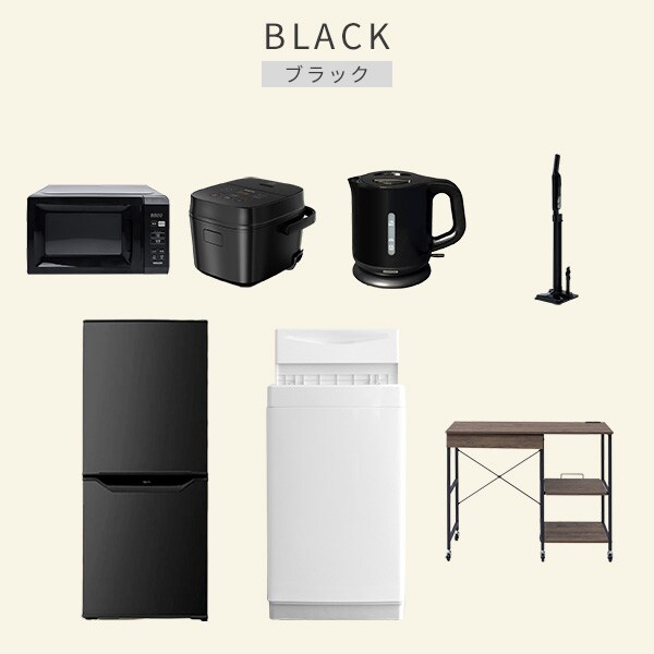| 商品説明 | 【洗濯機】 ●容量:6.0kg(洗濯時)、1.5kg(風乾燥時) ●8つのコース搭載(標準・毛布・おいそぎ・ドライ・ソフト・つけおき・部屋干し・槽洗浄) 【冷蔵庫】 ●容量:106L(冷蔵室73L/冷凍室33L) ●年間消費電力量:268kWh/年(50Hz/60Hz) 【電子レンジ】 ●容量17L、ターンテーブル ●高周波出力:50Hz(500W、200W相当)、60Hz(650W、500W、200W相当) 【炊飯器】 ●炊飯容量:3.0合炊き ●8種の炊き分けメニュー:省エネ、白米、早炊き、玄米、無洗米、炊込み、おかゆ、温度調理 【電気ケトル】 ●容量:1.0L ●空焚き防止機能搭載 【軽量クリーナー】 ●わずか820gの軽量クリーナー ●連続使用時間:(強)約10分、(標準)約25分 【レンジラック】 ●ゴミ箱上を活用する、しっかり頑丈なキッチンラック ●2口コンセント付き(計1500Wまで)でよく使う家電や雑貨をすっきりひとまとめ ●ラック以外メーカー保証:1年間 |