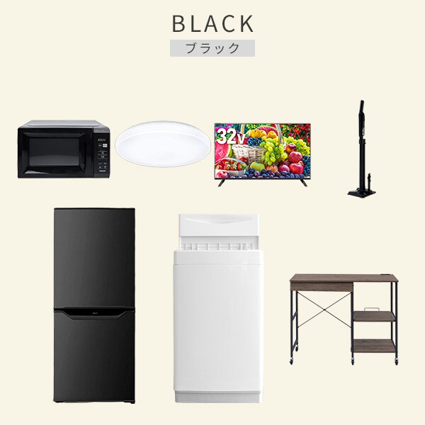【新生活応援セット】 家電セット 一人暮らし 新生活家電 7点セット 新品 ( 6kg洗濯機 106L冷蔵庫 電子レンジ シーリングライト 32型液晶テレビ 軽量クリーナー レンジラック )