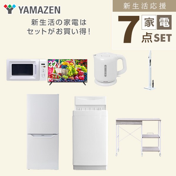 新生活家電セット 7点セット 一人暮らし (6kg洗濯機 106L冷蔵庫 電子レンジ 32型液晶テレビ 電気ケトル 軽量クリーナー レンジラック) ひとり暮らし 単身赴任新 学生 入学 おすすめ 山善 YAMAZEN【送料無料】