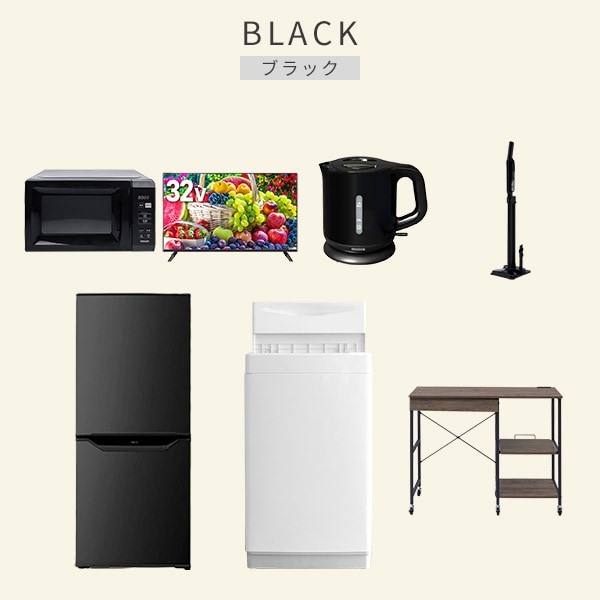 【新生活応援セット】 家電セット 一人暮らし 新生活家電 7点セット 新品 ( 6kg洗濯機 106L冷蔵庫 電子レンジ 32型液晶テレビ 電気ケトル 軽量クリーナー レンジラック )