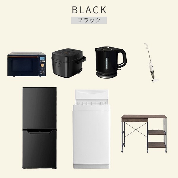 | 商品説明 | 【洗濯機】 ●容量:6.0kg(洗濯時)、1.5kg(風乾燥時) ●8つのコース搭載(標準・毛布・おいそぎ・ドライ・ソフト・つけおき・部屋干し・槽洗浄) 【冷蔵庫】 ●容量:106L(冷蔵室73L/冷凍室33L) ●年間消費電力量:268kWh/年(50Hz/60Hz) 【オーブンレンジ】 ●容量18L、フラットテーブル ●高周波出力:650W(60Hzのみ)/500W/200W相当 【炊飯器】 ●炊飯容量:3.0合炊き ●8種の炊き分けメニュー:省エネ、白米、早炊き、玄米、無洗米、炊込み、おかゆ、温度調理 【電気ケトル】 ●容量:1.0L ●空焚き防止機能搭載 【クリーナー】 ●スティック&ハンディの2WAY ●吸込仕事率:40W 【レンジラック】 ●ゴミ箱上を活用する、しっかり頑丈なキッチンラック ●2口コンセント付き(計1500Wまで)でよく使う家電や雑貨をすっきりひとまとめ ●ラック以外メーカー保証:1年間 |