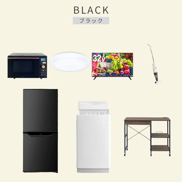 | 商品説明 | 【洗濯機】 ●容量:6.0kg(洗濯時)、1.5kg(風乾燥時) ●8つのコース搭載(標準・毛布・おいそぎ・ドライ・ソフト・つけおき・部屋干し・槽洗浄) 【冷蔵庫】 ●容量:106L(冷蔵室73L/冷凍室33L) ●年間消費電力量:268kWh/年(50Hz/60Hz) 【オーブンレンジ】 ●容量18L、フラットテーブル ●高周波出力:650W(60Hzのみ)/500W/200W相当 【シーリングライト】 ●全光束:3600lm ●30分、60分OFFタイマー付き 【32型液晶テレビ】 ●サイズ:32V型 ●2K対応ハイビジョン液晶テレビ 【クリーナー】 ●スティック&ハンディの2WAY ●吸込仕事率:40W 【レンジラック】 ●ゴミ箱上を活用する、しっかり頑丈なキッチンラック ●2口コンセント付き(計1500Wまで)でよく使う家電や雑貨をすっきりひとまとめ ●ラック以外メーカー保証:1年間 |