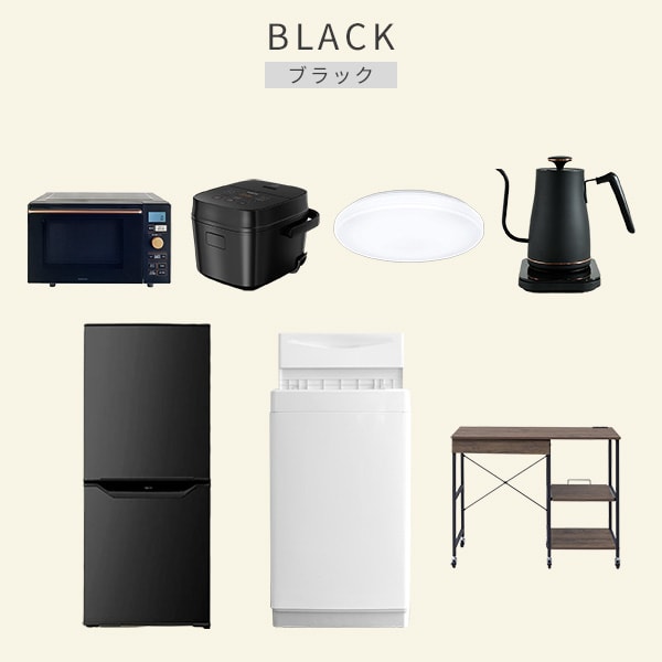 | 商品説明 | 【洗濯機】 ●容量:6.0kg(洗濯時)、1.5kg(風乾燥時) ●8つのコース搭載(標準・毛布・おいそぎ・ドライ・ソフト・つけおき・部屋干し・槽洗浄) 【冷蔵庫】 ●容量:106L(冷蔵室73L/冷凍室33L) ●年間消費電力量:268kWh/年(50Hz/60Hz) 【オーブンレンジ】 ●容量18L、フラットテーブル ●高周波出力:650W(60Hzのみ)/500W/200W相当 【炊飯器】 ●炊飯容量:3.0合炊き ●8種の炊き分けメニュー:省エネ、白米、早炊き、玄米、無洗米、炊込み、おかゆ、温度調理 【シーリングライト】 ●全光束:3600lm ●30分、60分OFFタイマー付き 【電気温調ケトル】 ●容量:800ml ●温度設定範囲:60-100度の間で1度単位で温度調整可能 【レンジラック】 ●ゴミ箱上を活用する、しっかり頑丈なキッチンラック ●2口コンセント付き(計1500Wまで)でよく使う家電や雑貨をすっきりひとまとめ ●ラック以外メーカー保証:1年間 |