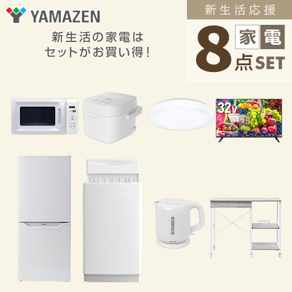 | 山善 YAMAZEN 【新生活応援セット】 家電セット 一人暮らし 新生活家電 8点セット 新品 ( 6kg洗濯機 106L冷蔵庫 電子レンジ 炊飯器 シーリングライト 32型液晶テレビ 電気ケトル レンジラック ) |