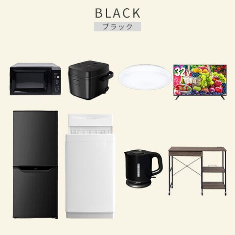 | 商品説明 | 【洗濯機】 ●容量:6.0kg(洗濯時)、1.5kg(風乾燥時) ●8つのコース搭載(標準・毛布・おいそぎ・ドライ・ソフト・つけおき・部屋干し・槽洗浄) 【冷蔵庫】 ●容量:106L(冷蔵室73L/冷凍室33L) ●年間消費電力量:268kWh/年(50Hz/60Hz) 【電子レンジ】 ●容量17L、ターンテーブル ●高周波出力:50Hz(500W、200W相当)、60Hz(650W、500W、200W相当) 【炊飯器】 ●炊飯容量:3.0合炊き ●8種の炊き分けメニュー:省エネ、白米、早炊き、玄米、無洗米、炊込み、おかゆ、温度調理 【シーリングライト】 ●全光束:3600lm ●30分、60分OFFタイマー付き 【32型液晶テレビ】 ●サイズ:32V型 ●2K対応ハイビジョン液晶テレビ 【電気ケトル】 ●容量:1.0L ●空焚き防止機能搭載 【レンジラック】 ●ゴミ箱上を活用する、しっかり頑丈なキッチンラック ●2口コンセント付き(計1500Wまで)でよく使う家電や雑貨をすっきりひとまとめ ●ラック以外メーカー保証:1年間 |
