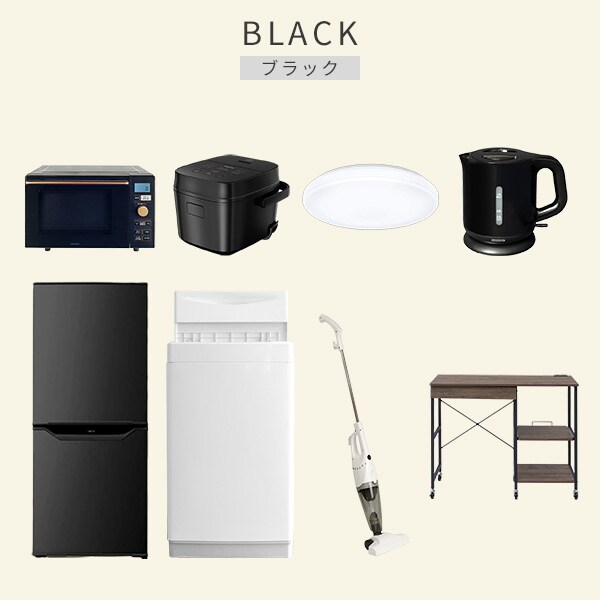 | 商品説明 | 【洗濯機】 ●容量:6.0kg(洗濯時)、1.5kg(風乾燥時) ●8つのコース搭載(標準・毛布・おいそぎ・ドライ・ソフト・つけおき・部屋干し・槽洗浄) 【冷蔵庫】 ●容量:106L(冷蔵室73L/冷凍室33L) ●年間消費電力量:268kWh/年(50Hz/60Hz) 【オーブンレンジ】 ●容量18L、フラットテーブル ●高周波出力:650W(60Hzのみ)/500W/200W相当 【炊飯器】 ●炊飯容量:3.0合炊き ●8種の炊き分けメニュー:省エネ、白米、早炊き、玄米、無洗米、炊込み、おかゆ、温度調理 【シーリングライト】 ●全光束:3600lm ●30分、60分OFFタイマー付き 【電気ケトル】 ●容量:1.0L ●空焚き防止機能搭載 【クリーナー】 ●スティック&ハンディの2WAY ●吸込仕事率:40W 【レンジラック】 ●ゴミ箱上を活用する、しっかり頑丈なキッチンラック ●2口コンセント付き(計1500Wまで)でよく使う家電や雑貨をすっきりひとまとめ ●ラック以外メーカー保証:1年間 |