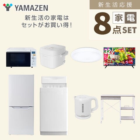 | 山善 YAMAZEN 【新生活応援セット】 家電セット 一人暮らし 新生活家電 8点セット 新品 ( 6kg洗濯機 106L冷蔵庫 オーブンレンジ 炊飯器 シーリングライト 32型液晶テレビ 電気ケトル レンジラック ) |