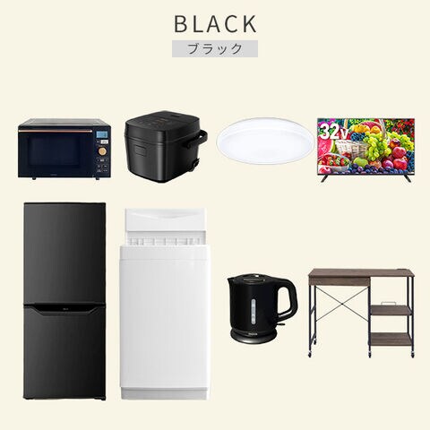 | 商品説明 | 【洗濯機】 ●容量:6.0kg(洗濯時)、1.5kg(風乾燥時) ●8つのコース搭載(標準・毛布・おいそぎ・ドライ・ソフト・つけおき・部屋干し・槽洗浄) 【冷蔵庫】 ●容量:106L(冷蔵室73L/冷凍室33L) ●年間消費電力量:268kWh/年(50Hz/60Hz) 【オーブンレンジ】 ●容量18L、フラットテーブル ●高周波出力:650W(60Hzのみ)/500W/200W相当 【炊飯器】 ●炊飯容量:3.0合炊き ●8種の炊き分けメニュー:省エネ、白米、早炊き、玄米、無洗米、炊込み、おかゆ、温度調理 【シーリングライト】 ●全光束:3600lm ●30分、60分OFFタイマー付き 【32型液晶テレビ】 ●サイズ:32V型 ●2K対応ハイビジョン液晶テレビ 【電気ケトル】 ●容量:1.0L ●空焚き防止機能搭載 【レンジラック】 ●ゴミ箱上を活用する、しっかり頑丈なキッチンラック ●2口コンセント付き(計1500Wまで)でよく使う家電や雑貨をすっきりひとまとめ ●ラック以外メーカー保証:1年間 |
