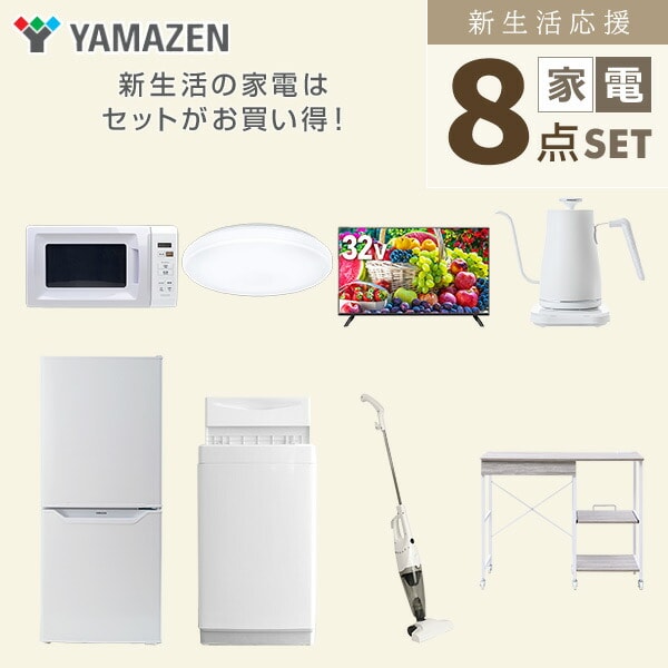 新生活家電セット 8点セット 一人暮らし (6kg洗濯機 106L冷蔵庫 電子レンジ シーリングライト 32型液晶テレビ 温調ケトル スティッククリーナー ひとり暮らし 単身赴任新 学生 入学 おすすめ 山善 YAMAZEN【送料無料】