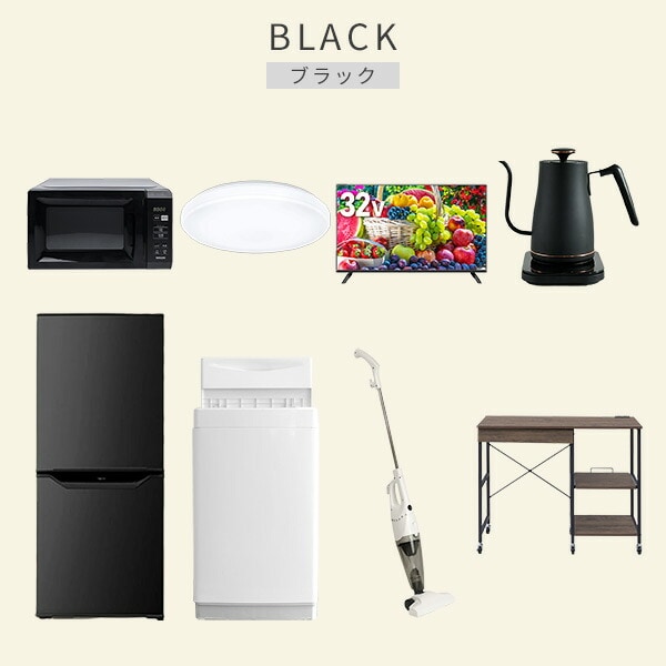| 商品説明 | 【洗濯機】 ●容量:6.0kg(洗濯時)、1.5kg(風乾燥時) ●8つのコース搭載(標準・毛布・おいそぎ・ドライ・ソフト・つけおき・部屋干し・槽洗浄) 【冷蔵庫】 ●容量:106L(冷蔵室73L/冷凍室33L) ●年間消費電力量:268kWh/年(50Hz/60Hz) 【電子レンジ】 ●容量17L、ターンテーブル ●高周波出力:50Hz(500W、200W相当)、60Hz(650W、500W、200W相当) 【シーリングライト】 ●全光束:3600lm ●30分、60分OFFタイマー付き 【32型液晶テレビ】 ●サイズ:32V型 ●2K対応ハイビジョン液晶テレビ 【電気温調ケトル】 ●容量:800ml ●温度設定範囲:60-100度の間で1度単位で温度調整可能 【クリーナー】 ●スティック&ハンディの2WAY ●吸込仕事率:40W 【レンジラック】 ●ゴミ箱上を活用する、しっかり頑丈なキッチンラック ●2口コンセント付き(計1500Wまで)でよく使う家電や雑貨をすっきりひとまとめ ●ラック以外メーカー保証:1年間 |