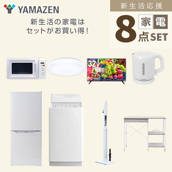| 山善 YAMAZEN 【新生活応援セット】 家電セット 一人暮らし 新生活家電 8点セット 新品 ( 6kg洗濯機 106L冷蔵庫 電子レンジ シーリングライト 32型液晶テレビ 電気ケトル 軽量クリーナー レンジラック ) |