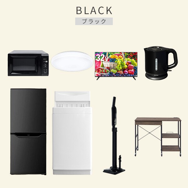 | 商品説明 | 【洗濯機】 ●容量:6.0kg(洗濯時)、1.5kg(風乾燥時) ●8つのコース搭載(標準・毛布・おいそぎ・ドライ・ソフト・つけおき・部屋干し・槽洗浄) 【冷蔵庫】 ●容量:106L(冷蔵室73L/冷凍室33L) ●年間消費電力量:268kWh/年(50Hz/60Hz) 【電子レンジ】 ●容量17L、ターンテーブル ●高周波出力:50Hz(500W、200W相当)、60Hz(650W、500W、200W相当) 【シーリングライト】 ●全光束:3600lm ●30分、60分OFFタイマー付き 【32型液晶テレビ】 ●サイズ:32V型 ●2K対応ハイビジョン液晶テレビ 【電気ケトル】 ●容量:1.0L ●空焚き防止機能搭載 【軽量クリーナー】 ●わずか820gの軽量クリーナー ●連続使用時間:(強)約10分、(標準)約25分 【レンジラック】 ●ゴミ箱上を活用する、しっかり頑丈なキッチンラック ●2口コンセント付き(計1500Wまで)でよく使う家電や雑貨をすっきりひとまとめ ●ラック以外メーカー保証:1年間 |