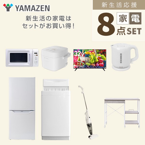 | 山善 YAMAZEN 【新生活応援セット】 家電セット 一人暮らし 新生活家電 8点セット 新品 ( 6kg洗濯機 106L冷蔵庫 電子レンジ 炊飯器 32型液晶テレビ 電気ケトル スティッククリーナー レンジラック ) |