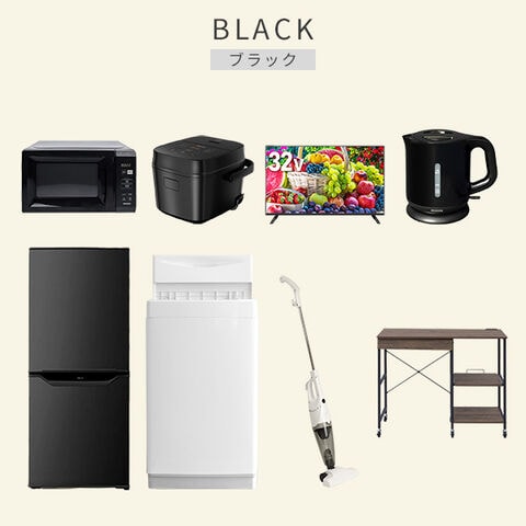 | 商品説明 | 【洗濯機】 ●容量:6.0kg(洗濯時)、1.5kg(風乾燥時) ●8つのコース搭載(標準・毛布・おいそぎ・ドライ・ソフト・つけおき・部屋干し・槽洗浄) 【冷蔵庫】 ●容量:106L(冷蔵室73L/冷凍室33L) ●年間消費電力量:268kWh/年(50Hz/60Hz) 【電子レンジ】 ●容量17L、ターンテーブル ●高周波出力:50Hz(500W、200W相当)、60Hz(650W、500W、200W相当) 【炊飯器】 ●炊飯容量:3.0合炊き ●8種の炊き分けメニュー:省エネ、白米、早炊き、玄米、無洗米、炊込み、おかゆ、温度調理 【32型液晶テレビ】 ●サイズ:32V型 ●2K対応ハイビジョン液晶テレビ 【電気ケトル】 ●容量:1.0L ●空焚き防止機能搭載 【クリーナー】 ●スティック&ハンディの2WAY ●吸込仕事率:40W 【レンジラック】 ●ゴミ箱上を活用する、しっかり頑丈なキッチンラック ●2口コンセント付き(計1500Wまで)でよく使う家電や雑貨をすっきりひとまとめ ●ラック以外メーカー保証:1年間 |