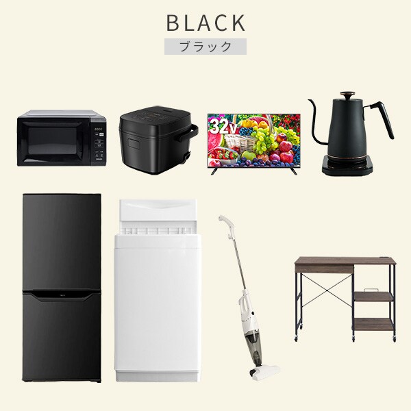 | 商品説明 | 【洗濯機】 ●容量:6.0kg(洗濯時)、1.5kg(風乾燥時) ●8つのコース搭載(標準・毛布・おいそぎ・ドライ・ソフト・つけおき・部屋干し・槽洗浄) 【冷蔵庫】 ●容量:106L(冷蔵室73L/冷凍室33L) ●年間消費電力量:268kWh/年(50Hz/60Hz) 【電子レンジ】 ●容量17L、ターンテーブル ●高周波出力:50Hz(500W、200W相当)、60Hz(650W、500W、200W相当) 【炊飯器】 ●炊飯容量:3.0合炊き ●8種の炊き分けメニュー:省エネ、白米、早炊き、玄米、無洗米、炊込み、おかゆ、温度調理 【32型液晶テレビ】 ●サイズ:32V型 ●2K対応ハイビジョン液晶テレビ 【電気温調ケトル】 ●容量:800ml ●温度設定範囲:60-100度の間で1度単位で温度調整可能 【クリーナー】 ●スティック&ハンディの2WAY ●吸込仕事率:40W 【レンジラック】 ●ゴミ箱上を活用する、しっかり頑丈なキッチンラック ●2口コンセント付き(計1500Wまで)でよく使う家電や雑貨をすっきりひとまとめ ●ラック以外メーカー保証:1年間 |