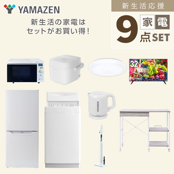 | 山善 YAMAZEN 【新生活応援セット】 家電セット 一人暮らし 新生活家電 9点セット 新品 ( 6kg洗濯機 106L冷蔵庫 オーブンレンジ 炊飯器 シーリングライト 32型液晶テレビ 電気ケトル 軽量クリーナー レンジラック ) |
