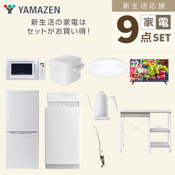| 山善 YAMAZEN 【新生活応援セット】 家電セット 一人暮らし 新生活家電 9点セット 新品 ( 6kg洗濯機 106L冷蔵庫 電子レンジ 炊飯器 シーリングライト 32型液晶テレビ 温調ケトル スティッククリーナー レンジラック ) |