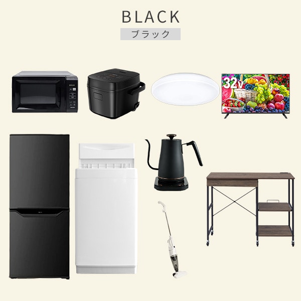 | 商品説明 | 【洗濯機】 ●容量:6.0kg(洗濯時)、1.5kg(風乾燥時) ●8つのコース搭載(標準・毛布・おいそぎ・ドライ・ソフト・つけおき・部屋干し・槽洗浄) 【冷蔵庫】 ●容量:106L(冷蔵室73L/冷凍室33L) ●年間消費電力量:268kWh/年(50Hz/60Hz) 【電子レンジ】 ●容量17L、ターンテーブル ●高周波出力:50Hz(500W、200W相当)、60Hz(650W、500W、200W相当) 【炊飯器】 ●炊飯容量:3.0合炊き ●8種の炊き分けメニュー:省エネ、白米、早炊き、玄米、無洗米、炊込み、おかゆ、温度調理 【シーリングライト】 ●全光束:3600lm ●30分、60分OFFタイマー付き 【32型液晶テレビ】 ●サイズ:32V型 ●2K対応ハイビジョン液晶テレビ 【電気温調ケトル】 ●容量:800ml ●温度設定範囲:60-100度の間で1度単位で温度調整可能 【クリーナー】 ●スティック&ハンディの2WAY ●吸込仕事率:40W 【レンジラック】 ●ゴミ箱上を活用する、しっかり頑丈なキッチンラック ●2口コンセント付き(計1500Wまで)でよく使う家電や雑貨をすっきりひとまとめ ●ラック以外メーカー保証:1年間 |