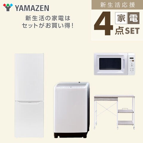 新生活家電セット 4点セット 一人暮らし (8kg洗濯機 173L冷蔵庫 電子レンジ レンジラック) ひとり暮らし 単身赴任新 学生 入学 おすすめ 山善 YAMAZEN【送料無料】