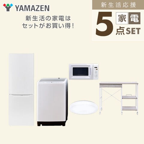 | 山善 YAMAZEN 新生活家電セット 5点セット 一人暮らし ( 8kg洗濯機 173L冷蔵庫 電子レンジ シーリングライト レンジラック ) |