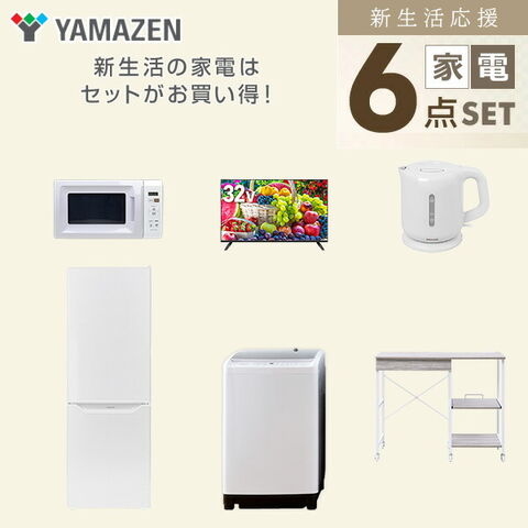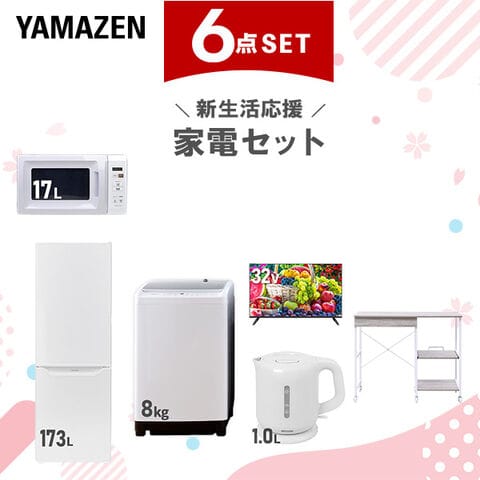 新生活家電セット 6点セット 一人暮らし (8kg洗濯機 173L冷蔵庫 電子レンジ 32型液晶テレビ 電気ケトル レンジラック) ひとり暮らし 単身赴任新 学生 入学 おすすめ 山善 YAMAZEN【送料無料】