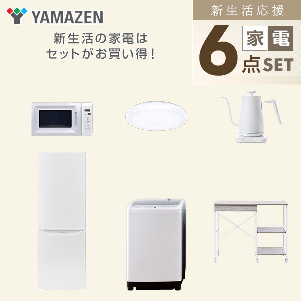 新生活家電セット 6点セット 一人暮らし (8kg洗濯機 173L冷蔵庫 電子レンジ シーリングライト 温調ケトル レンジラック) ひとり暮らし 単身赴任新 学生 入学 おすすめ 山善 YAMAZEN【送料無料】