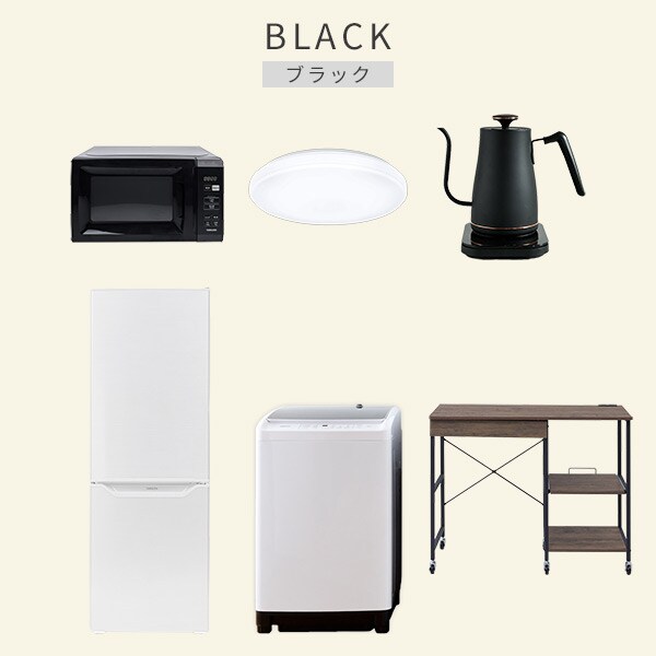 | 商品説明 | 【洗濯機】 ●容量:8.0kg(洗濯時)、1.5kg(風乾燥時) ●8つのコース搭載(標準・毛布・おいそぎ・ドライ・ソフト・つけおき・部屋干し・槽洗浄) 【冷蔵庫】 ●容量:173L(冷蔵室121L/冷凍室52L) ●年間消費電力量:250kWh/年(50Hz/60Hz) 【電子レンジ】 ●容量17L、ターンテーブル ●高周波出力:50Hz(500W、200W相当)、60Hz(650W、500W、200W相当) 【シーリングライト】 ●全光束:3500lm ●30分、60分OFFタイマー付き 【電気温調ケトル】 ●容量:800ml ●温度設定範囲:60-100度の間で1度単位で温度調整可能 【レンジラック】 ●ゴミ箱上を活用する、しっかり頑丈なキッチンラック ●2口コンセント付き(計1500Wまで)でよく使う家電や雑貨をすっきりひとまとめ ●ラック以外メーカー保証:1年間 |