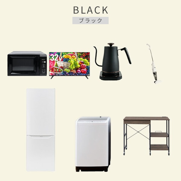 【新生活応援セット】 家電セット 二人暮らし 新生活家電 7点セット 新品 ( 8kg洗濯機 173L冷蔵庫 電子レンジ 32型液晶テレビ 温調ケトル スティッククリーナー レンジラック )