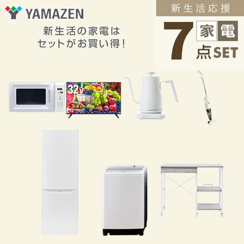 新生活家電セット 7点セット 一人暮らし (8kg洗濯機 173L冷蔵庫 電子レンジ 32型液晶テレビ 温調ケトル スティッククリーナー レンジラック) ひとり暮らし 単身赴任新 学生 入学 おすすめ 山善 YAMAZEN【送料無料】