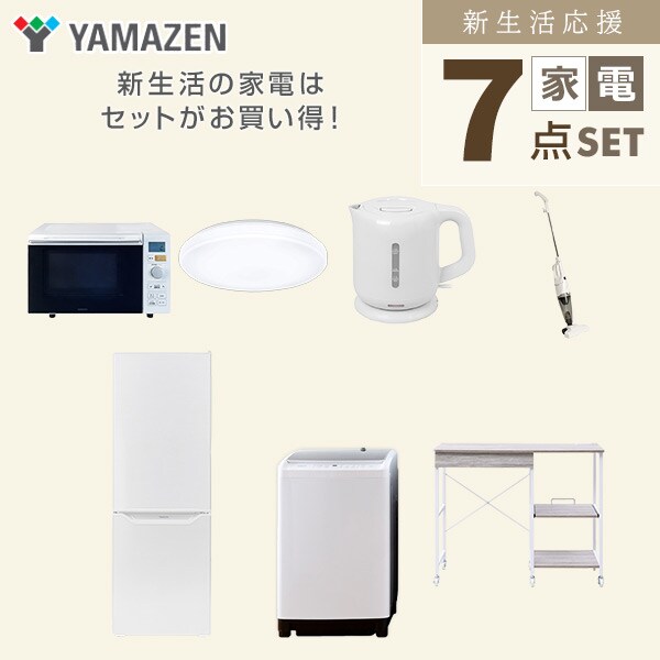 | 山善 YAMAZEN 新生活家電セット 7点セット 一人暮らし ( 8kg洗濯機 173L冷蔵庫 オーブンレンジ シーリングライト 電気ケトル スティッククリーナー レンジラック ) |