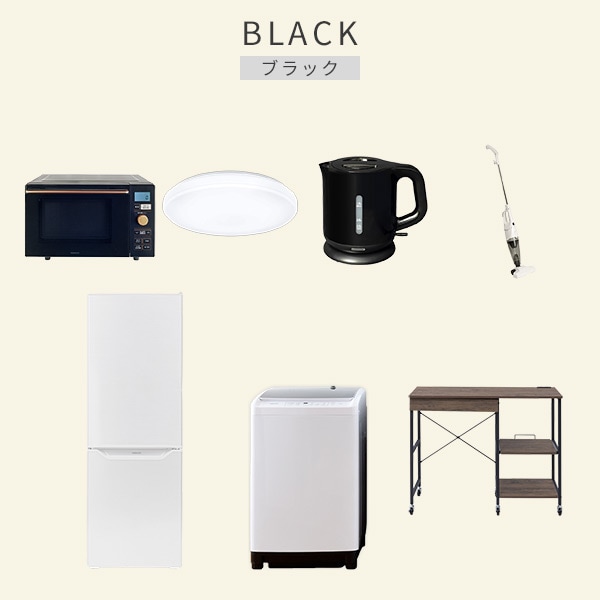 | 商品説明 | 【洗濯機】 ●容量:8.0kg(洗濯時)、1.5kg(風乾燥時) ●8つのコース搭載(標準・毛布・おいそぎ・ドライ・ソフト・つけおき・部屋干し・槽洗浄) 【冷蔵庫】 ●容量:173L(冷蔵室121L/冷凍室52L) ●年間消費電力量:250kWh/年(50Hz/60Hz) 【オーブンレンジ】 ●容量18L、フラットテーブル ●高周波出力:650W(60Hzのみ)/500W/200W相当 【シーリングライト】 ●全光束:3500lm ●30分、60分OFFタイマー付き 【電気ケトル】 ●容量:1.0L ●空焚き防止機能搭載 【クリーナー】 ●スティック&ハンディの2WAY ●吸込仕事率:40W 【レンジラック】 ●ゴミ箱上を活用する、しっかり頑丈なキッチンラック ●2口コンセント付き(計1500Wまで)でよく使う家電や雑貨をすっきりひとまとめ ●ラック以外メーカー保証:1年間 |